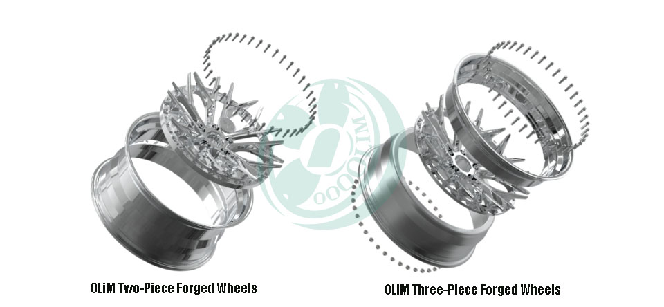 OLiM 3 ピース鍛造ホイールは、カスタム芸術性の傑作です。センターディスク、インナーバレル、アウターリップは別個のコンポーネントであり、航空宇宙グレードのボルトと独自のシーリングソリューションを使用して細心の注意を払って組み立てられています。各パーツは個別にカスタマイズできます。